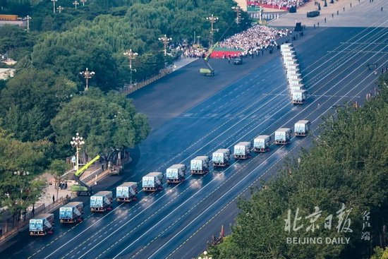 9月3日,出圖當(dāng)所有人的視角鏡頭對準(zhǔn)長安街時,北京日報客戶端記者在北京飯店的閱兵制高點,記錄下了一場不同視角的地上點位閱兵。