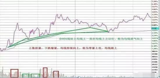 高開后高走,均線向上通氣,后浪底高于前浪頂,均線跟上(帶量上攻)