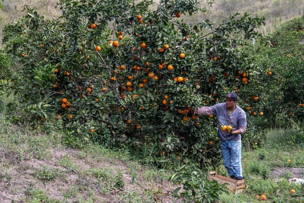 8月19日,在巴西里約熱內盧州坦瓜市,一名橙農采摘橙子。每年8月至9月,巴西各地橙園進入收獲季節(jié)。巴西是全球最大的橙汁生產國和出口國之一,在國際市場上占有重要地位,其產品遠銷世界各地。新華社記者王天聰攝