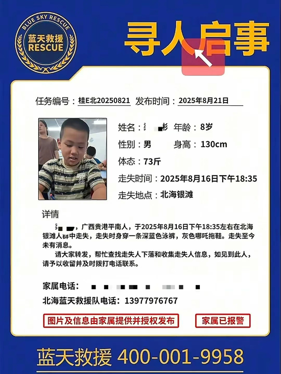 連日來,歲男8歲男孩梁清彬在廣西北海市銀灘景區(qū)走失事件持續(xù)引發(fā)關(guān)注。童失