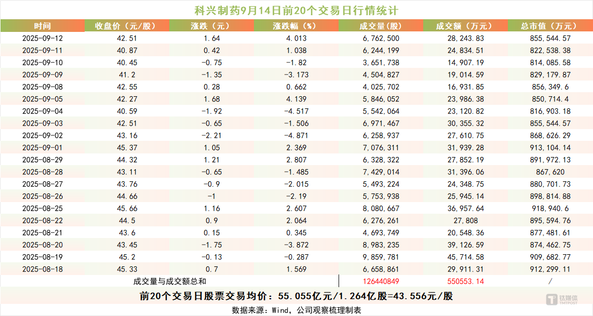 筆者以9月14日(周日)股東發(fā)布詢價(jià)轉(zhuǎn)讓計(jì)劃前的最后一個(gè)交易日為基準(zhǔn),向前追溯20個(gè)交易日計(jì)算,科興制藥的“20日均價(jià)”為43.556元/股,對應(yīng)的轉(zhuǎn)讓價(jià)格下限為30.489元/股。而本輪轉(zhuǎn)讓最終定價(jià)為30.88元/股,幾乎貼近擬定下限,相當(dāng)于在定價(jià)基準(zhǔn)上讓利約29.1%。