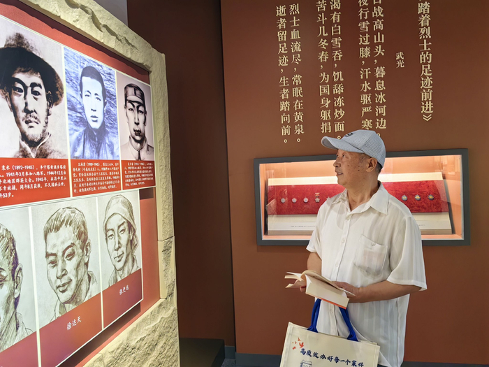 早年前,王俊興也曾去過平北抗日烈士紀(jì)念園,但當(dāng)時(shí)還沒有布置《紅色平北 海陀豐碑》的展覽,所以他并不知道后來的展覽里面有王海清烈士的介紹。時(shí)隔多年,再次造訪,王俊興不僅看到父親的事跡被鄭重鐫刻在烈士墻上,父親的照片也補(bǔ)上去了。望著這一幕,80歲的王俊興老人眼里泛起了光,他站在烈士墻前面,深情地凝視著父親的照片,劉繼臣用手機(jī)定格了這個(gè)珍貴的瞬間。王俊興用一種特殊的方式與從未謀面的父親實(shí)現(xiàn)了一次溫暖的“同框”。
