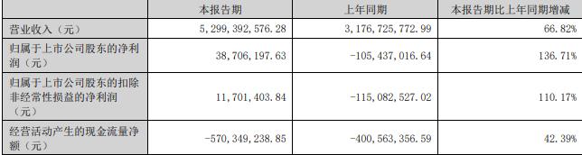 據(jù)公司2025年半年報,報告期內(nèi),公司實現(xiàn)營業(yè)收入53.00億元,同比增長66.82%;歸屬于上市公司股東的凈利潤3870.62萬元,同比增長136.71%;扣除非經(jīng)常性損益后的凈利潤1170.14萬元,同比增長110.17%;經(jīng)營活動產(chǎn)生的現(xiàn)金流量凈額-5.70億元。